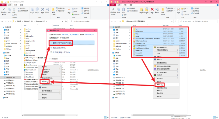 1.一定要退出彗星,再复制粘贴。2.是“复制粘贴”,不要“移动”或“剪切”。3.如果提示“替换或跳过文件”,则点击“替换”。4.如果替换时提示“文件正在使用”,说明彗星没有完全退出。那么,先取消复制替换,等彗星完全退出(或者,在任务管理器强制关闭彗星),再进行复制替换。--------------------------------------------------