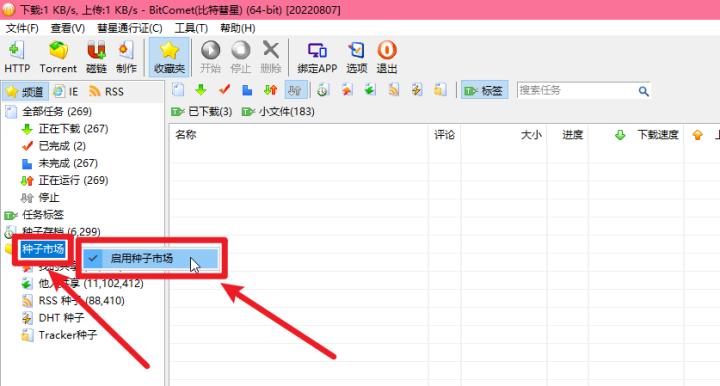 《教程7.比特彗星没有种子市场,开启种子市场》