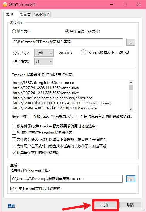 不选中【私有种子(仅当Tracker服务器要求使用时才应选中)】
