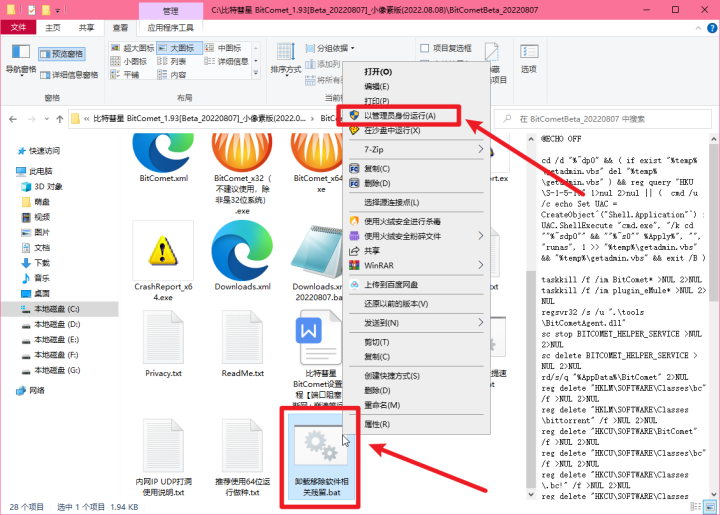 打开解压后的文件夹,以管理员身份运行【卸载移除软件相关残留.bat】