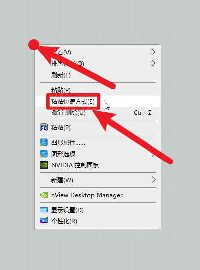 ②右键点击桌面,粘贴快捷方式