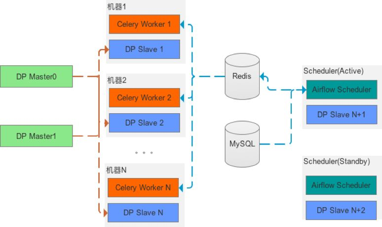 DP项目从2017年1月开始立项开发,6月份正式投入生产,之后经过了N轮功能迭代,在易用性和稳定性方面有了显著提升,目前调度集群包括2台Master和13台 Slave(调度)节点(其中2台用于 Scheduler ,另外11台用于 Worker ),每天支持7k+的任务调度,满足数据仓库、数据中心、BI、商品、支付等多个产品线的应用。