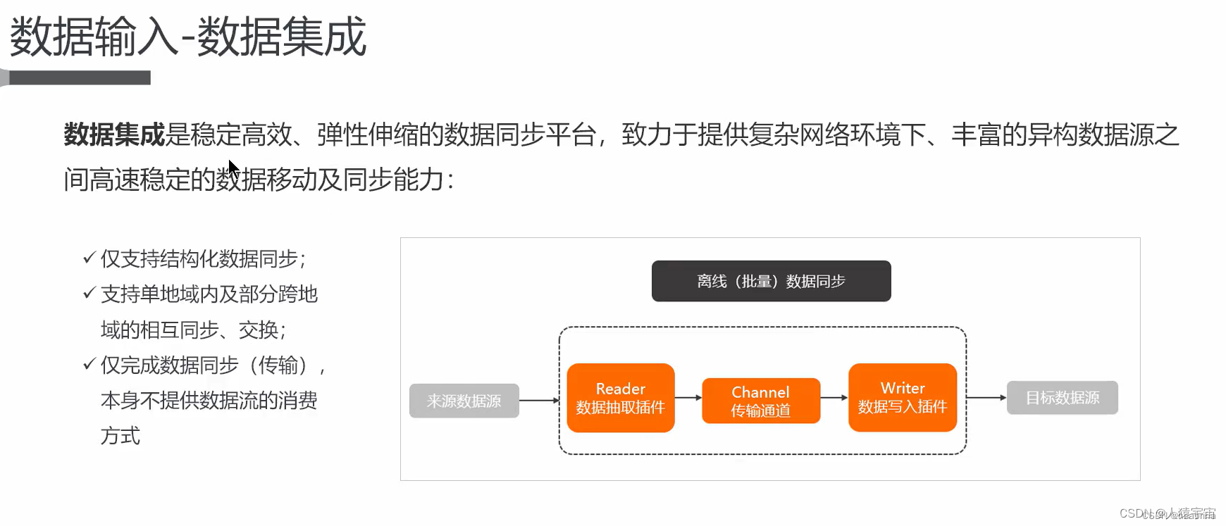数据集成主要用于离线批量数据同步
