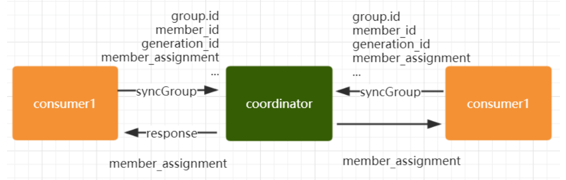 member_assignment :在syncGroup发送请求的时候,只有leader角色的comsumer才会去发送这个信息,而其他消费端是空的。然后会通过coordinator去分发给各个comsumer。