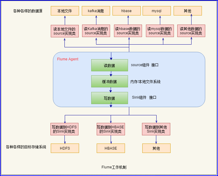 问题描述:1.现实中数据源的来源类型很多,目标存储系统类型很多。2.数据采集对接各种各样的数据源,各种各样的目标存储系统。如果换一个数据源或者目标存储系统,需要重新编写代码,非常麻烦。在这个背景下,Cloudera公司封装了一个框架Flume-提供一个高可用的,高可靠的,分布式的海量日志采集、聚合和传输的系统。