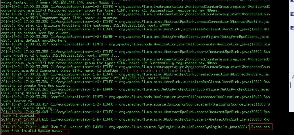 首先先启动2个接受复制事件代理,如果先启动源发送的代理,会报他找不到sinks的绑定,因为2个接事件的代理还未起来。