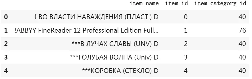 items.drop(['item_f1', 'item_f2'], 1, inplace=True)