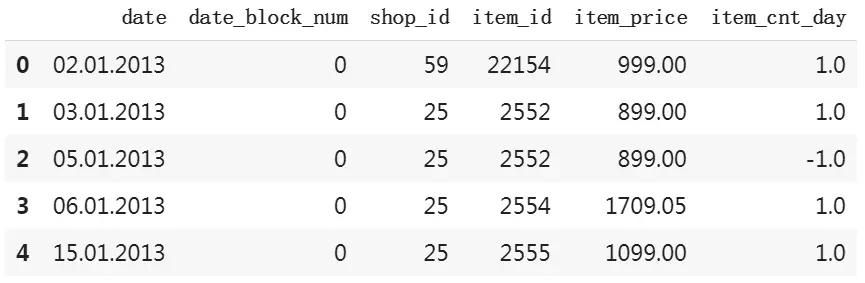 数据描述告诉我们,sale_train.csv可以通过shop_id、item_id、item_category_id来合并items.csv、item_categories.csv和shops.csv。