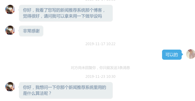 万万没想到,我的无心之举没想到成就了很多在校同学。每年毕设季都能收到非常多的来自同学们的私信,大致是下面这种。