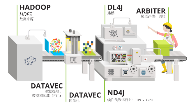 - DL4J与Hadoop和Spark集成,支持分布式CPU和GPU