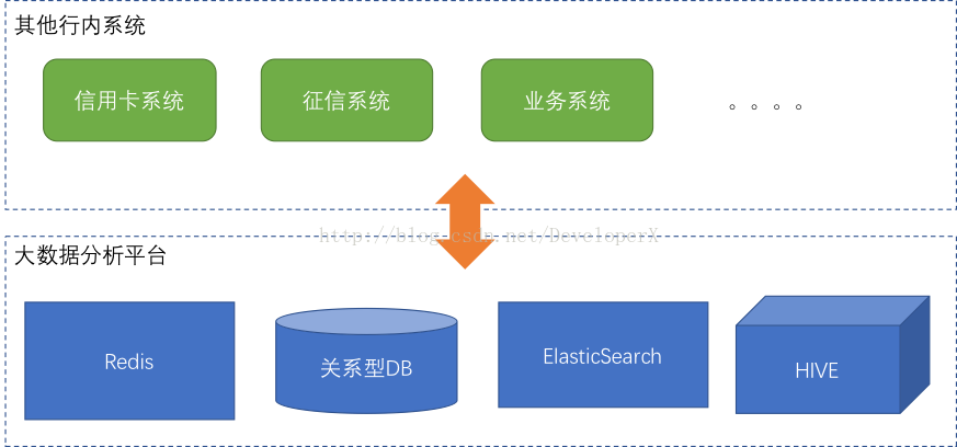 在银行里边,原来的各种系统的数据库逐渐拆分和脱离其持久层,并重新组合。银行把这些数据存储单元归纳到大数据平台中,也就是说,大数据平台充当了其他系统的数据库(可以想象成公共的大水池),并且进一步的,要求其具有数据分析、数据挖掘等数仓和大数据的功能。最后以服务的形式提供接口给其他系统使用,其他系统也渐渐的不再存储核心的数据或只存储部分核心、临时数据。