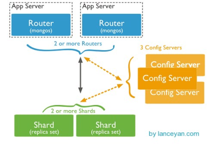 - 配置服务器:config servers存储集群的元数据,这些数据包含了集群数据集到各分片的映射关系。查询路由就是通过这些元数据到特定的分片上执行指定的数据操作。