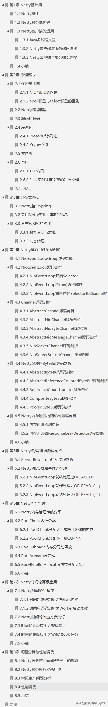 以上就是眯眯眼吐司最近收集整理的关于膜拜,终于拿到了美团大佬分享的Netty源码剖析与应用PDF前言目录主要内容本文适合读者的全部内容,更多相关膜拜,终于拿到了美团大佬分享内容请搜索靠谱客的其他文章。