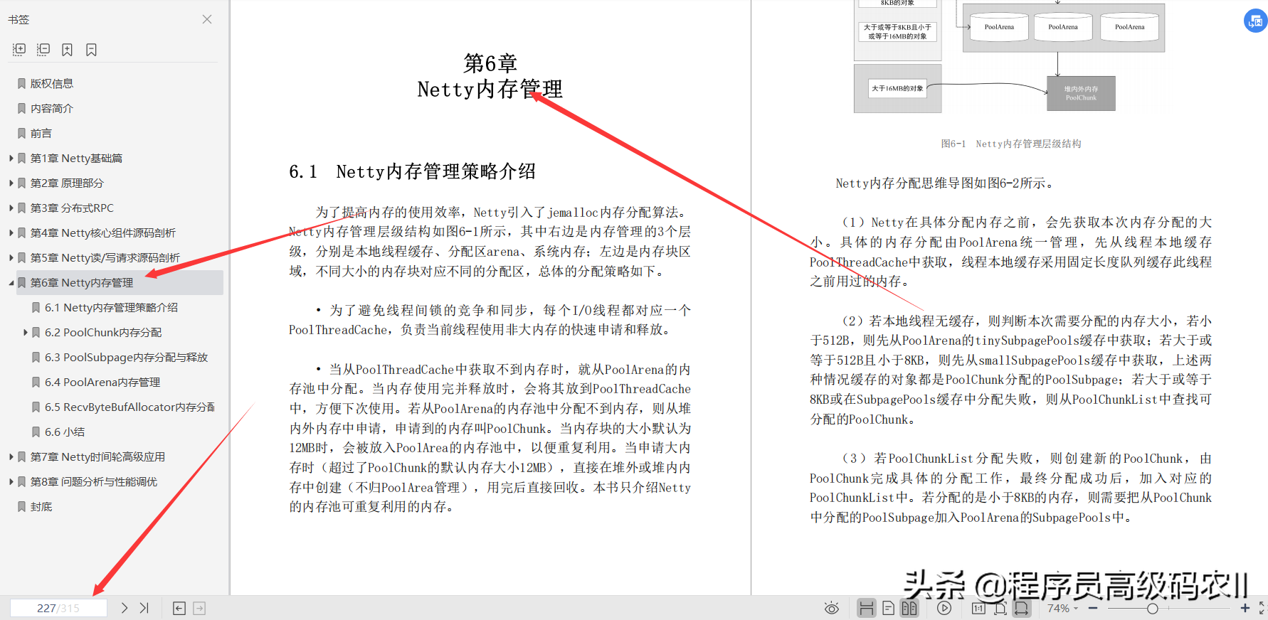 **第6章Netty内存管理;**内存管理是Netty最核心的部分,但也是最难以理解的部分,这主要是因为代码中涉及多线程的并发,以及各种位移的与或非操作。建议读者在学习时,把难以理解的代码贴到测试类中进行简单的调试。