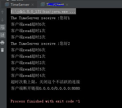 服务端的心跳检测是1秒,所以打印了3次read超时后,