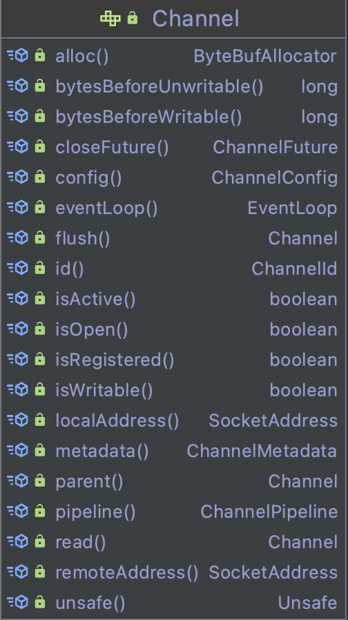 public interface Channel extends AttributeMap, ChannelOutboundInvoker, Comparable<Channel> {