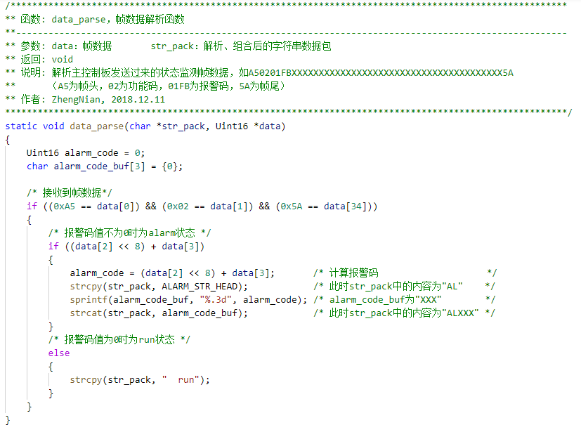 这里的应用比较简单,只是解析一个报警信息来显示。有时候需要用到整个数据包里的数据,这时候我们可以建立一个结构体来保存所有我们需要的数据,这样方便我们清晰、有条理地对数据进行处理。例如:
