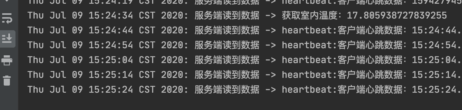 至此,整个心跳机制就完成了,这样每隔10秒客户端就会给服务端发送一个心跳消息,下节我们通过了解通协议以完善心跳机制的代码。