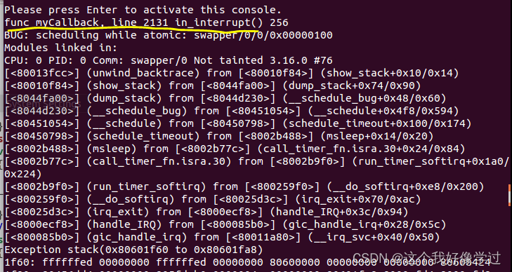 在回调函数中调用了msleep进行休眠。会出现原子上下文不允许调度的错误