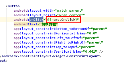 首先在xml中定义点击事件onClick,下面红框里面的home.Onclick这个方法名称随意写