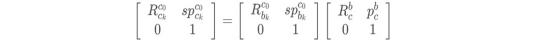 由于现在还不知道世界帧的任何信息,本文将第一个相机帧作为SFM的参考帧。所有帧的位姿和特征点位置是相对于第0帧的相机。假设已经有了关于相机和IMU之间的测量外参数,可以将位姿从相机坐标系转换为(IMU)坐标系(有旋转约束和平移约束):
