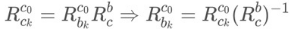 但是世界坐标系我们不知道,只知道c0坐标系,所以需要把上面的公式转到c0坐标系上: