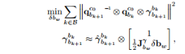 - 利用求解出来的qbc,结合相机间的约束,求解IMU角速度的bias。