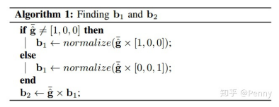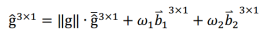 如上图,采用球面坐标进行参数化,也就是用g的模长作为半径画一个半球,上图蓝色线对应的是gc0的测量值的方向(也就是优化前的方向),在这个交点上找到一个切平面,用gc0,b1,b2构造一个坐标系,那么在轴b1和b2上坐标值w1和w2就是我们需要求的量。求出来之后,把等号右边加在一起,就是优化后的gc0值。