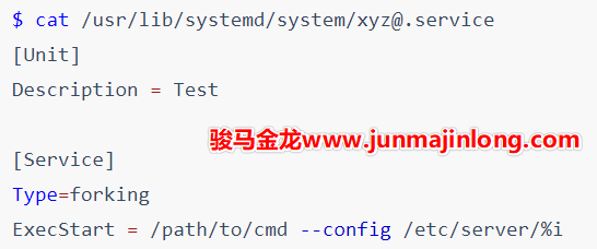systemd service支持简单的模板型Unit配置文件,在Unit配置文件中可以使用%n %N %p %i…等特殊符号进行占位,在systemd读取配置文件时会将这些特殊符号解析并替换成对应的值。