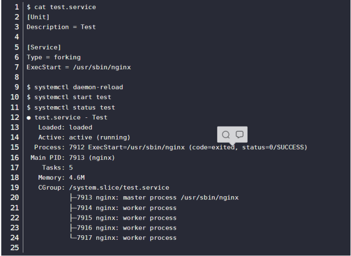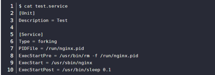 例如,nginx命令默认以daemon模式运行,所以可直接将其配置为forking类型: