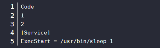 ExecStart指令指定启动本服务时执行的命令,即启动一个本该前台运行的sleep进程作为服务进程在后台运行。