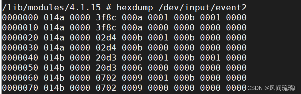 使用 hexdump 命令来查看/dev/input/event1 文件内容