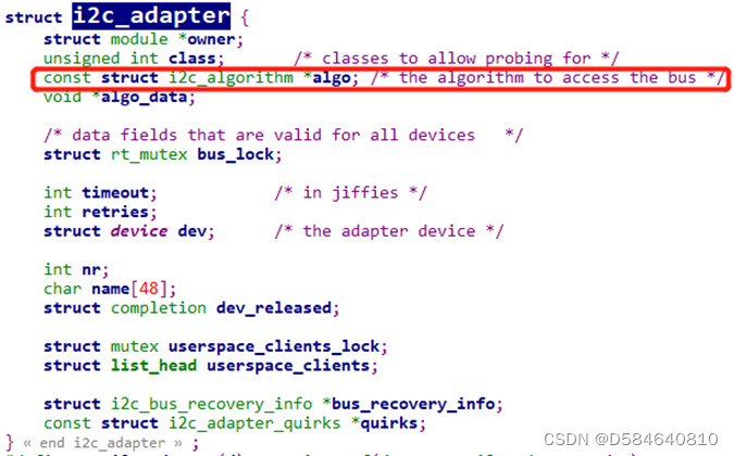 const struct i2c_algorithm *algo; //i2c总线发送和接收数据的方法,是需要我们重点关注的,下面会列出