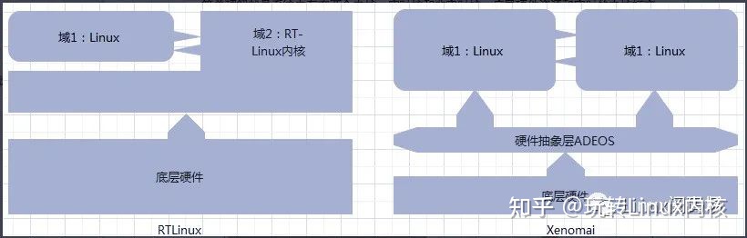 图2:RTLinux和Xenomai框架对比
