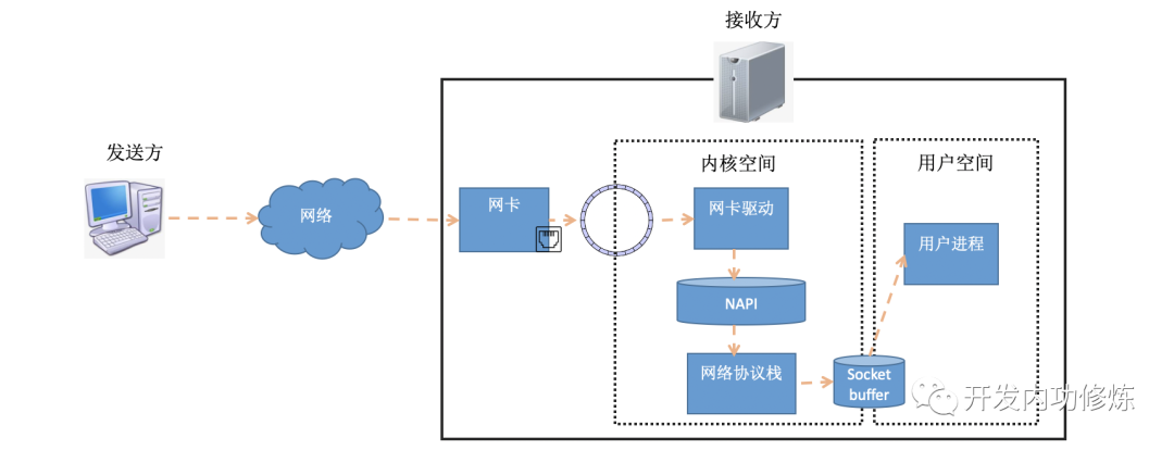 - 第一类是内核消耗CPU进行接收、发送或者是处理,包括系统调用、软中断和上下文切换。它们的耗时基本都是几个us左右。具体的分析过程可以参见《一次系统调用开销到底有多大?》、《软中断会吃掉你多少CPU?》、《进程/线程切换会用掉你多少CPU?》这三篇文章。