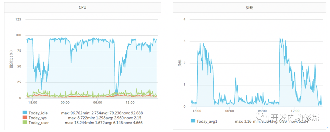 正常一个系统调用的耗时也就是几个us(微秒)左右。但是在《追踪将服务器CPU耗光的凶手!》一文中笔者的一台服务器当时遇到一个状况,某次运维同学转达过来说该服务CPU不够用了,需要扩容。当时的服务器监控如下图:
