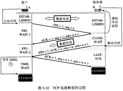 如图,这里我就不过多累述了。简要说明一下,图中的关闭时双向的,即AàB关闭了链接,BàA仍然可以传输数据。所以关闭时候记得全都关了,它才会释放链接。