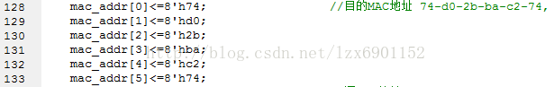 1、在发送模块目的地址,请修改成你pc的网卡地址,并重新编译。如图: