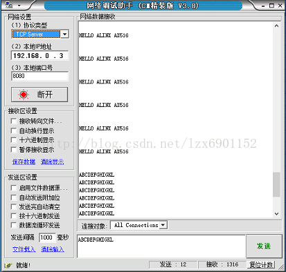 5、 最后请不要忘记点断开按钮,毕竟TCP协议是个严谨的东西。