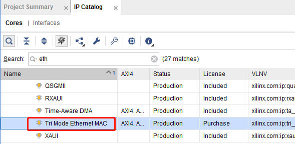 Xilinx为我们提供了一个叫做“Tri-Mode Ethernet MAC”的IP核,三种模式的以太网介质访问控制层器,支持全双工半双工的千兆、百兆、十兆和2.5G的传输速率,支持MII、GMII、RGMII、SGMII和TBI接口。文档为《PG051》。