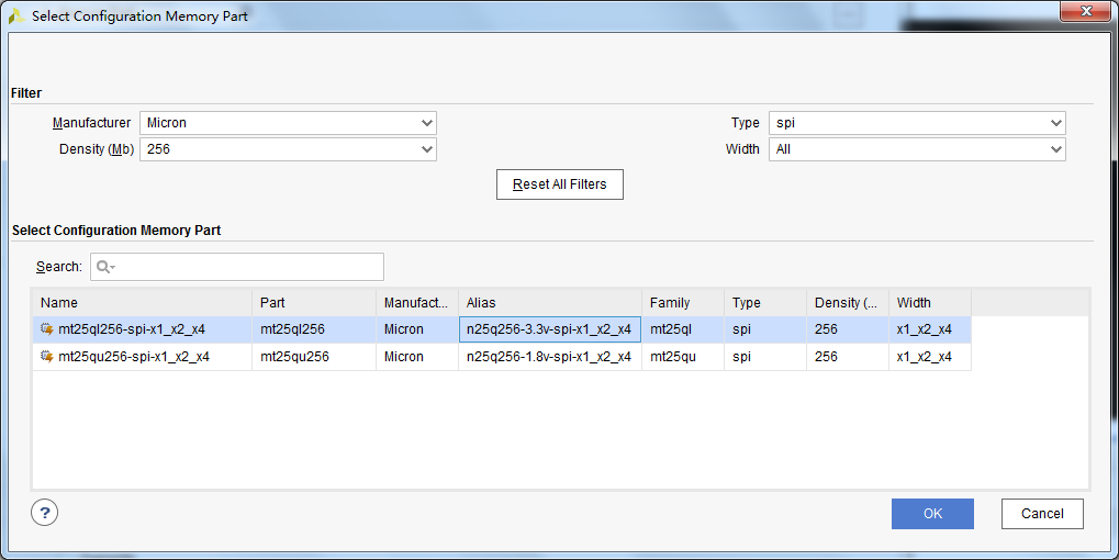 例如在K7工程下就能找到下面的3.3v的n25q256,但在V7工程下就没有这种3.3V的n25q256.