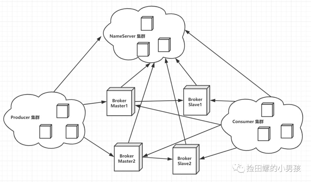 Broker分为Master与Slave,一个Master可以对应多个Slave,但是一个Slave只能对应一个Master,Master与Slave的对应关系通过指定相同的BrokerName,不同的BrokerId来定义,BrokerId为0表示Master,非0表示Slave。Master也可以部署多个。每个Broker与Name Server集群中的所有节点建立长连接,定时注册Topic信息到所有Name Server。
