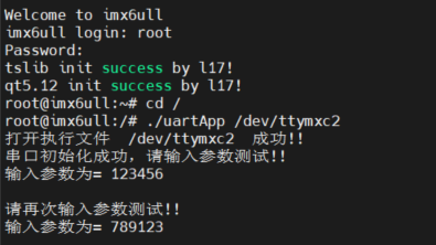 直接编译代码,然后将执行文件,uartApp拷贝到文件系统中测试: