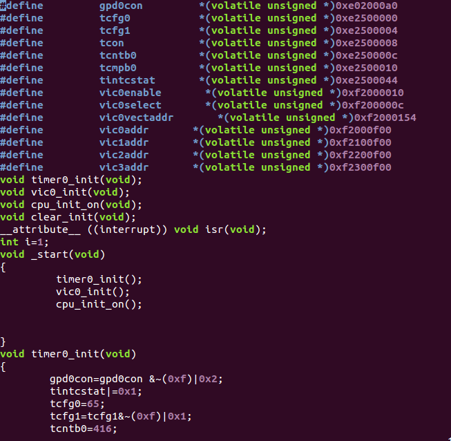 __attribute__((interrupt)) void isr(void): 中断处理函数。