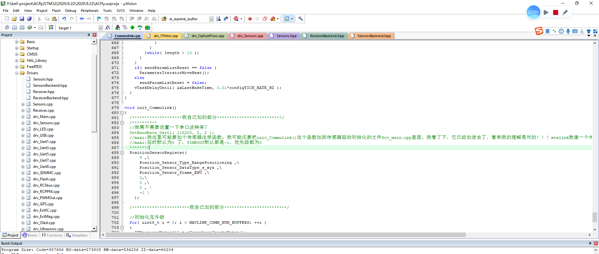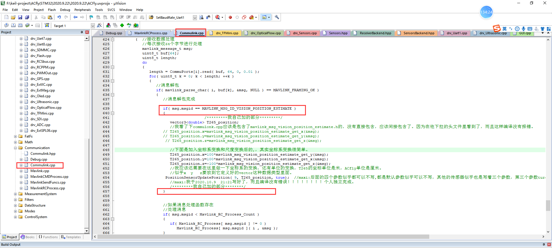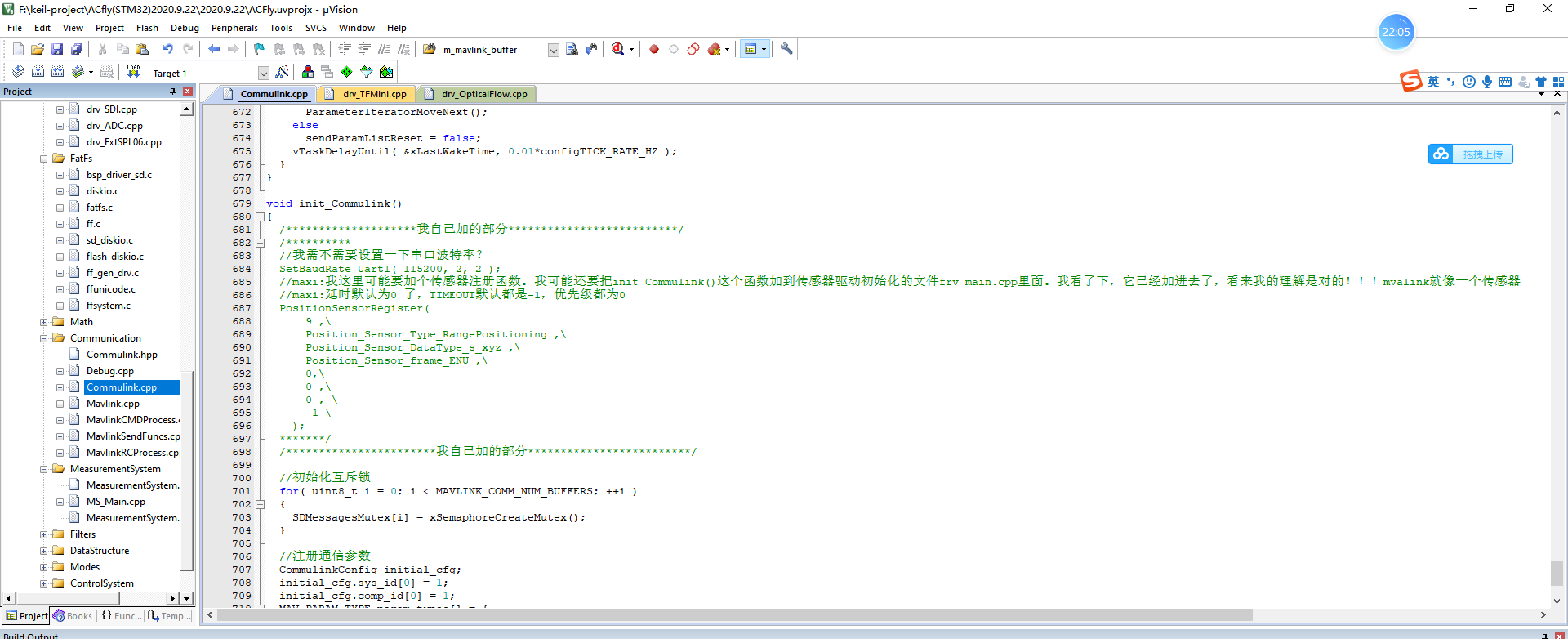 目前四个文件内有改动,commulink.cpp drv_main.cpp GUI.cpp Debug.cpp进到对应文件可以看到,但凡我改动过的地方我都会专门用注释行隔开。(这也是最终确认OK,准备下一步无人机实飞的代码版本)