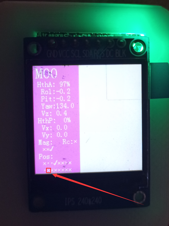 这是我以前就是7月份那次烧也就是刚买来ACfly时烧的程序的屏幕显示,第九个的位置上是个×