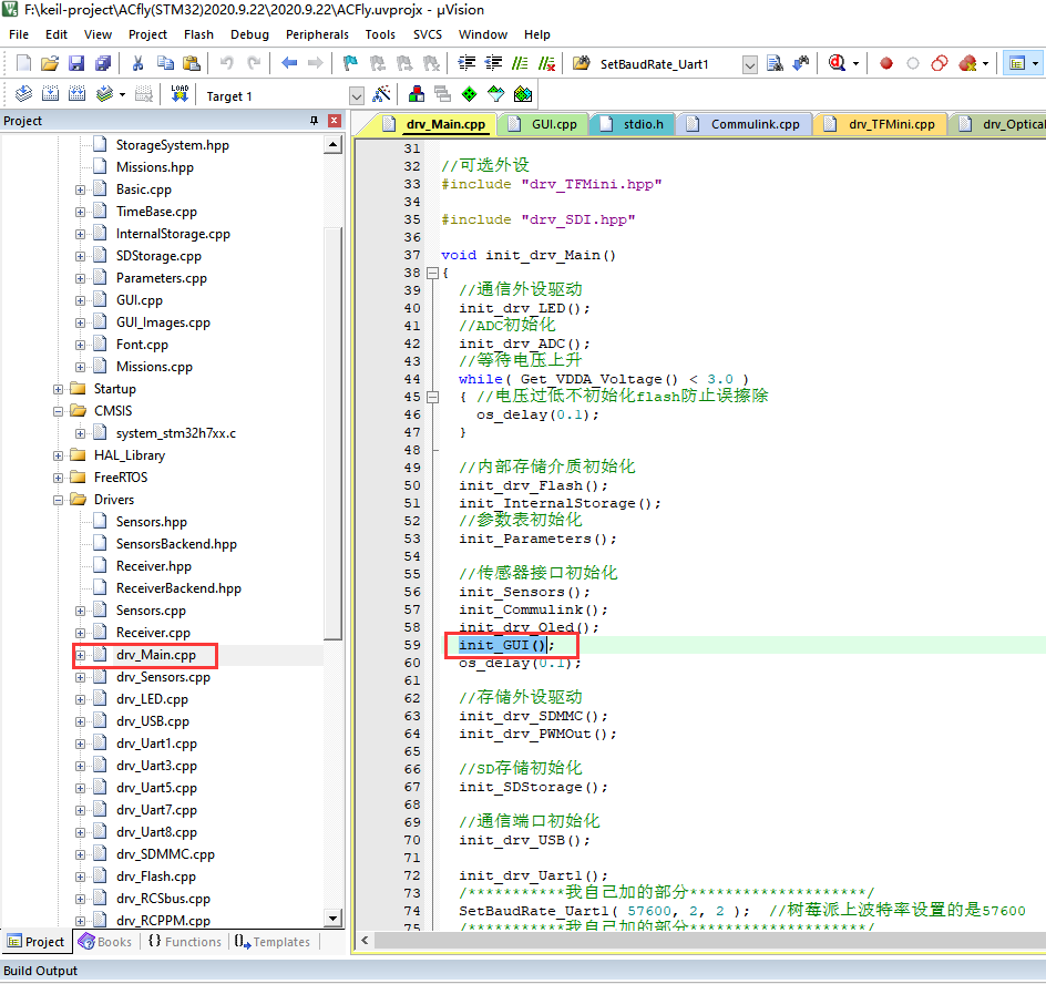 目前三个文件内有改动,commulink.cpp drv_main.cpp GUI.cpp,进到对应文件可以看到,但凡我改动过的地方我都会专门用注释行隔开。