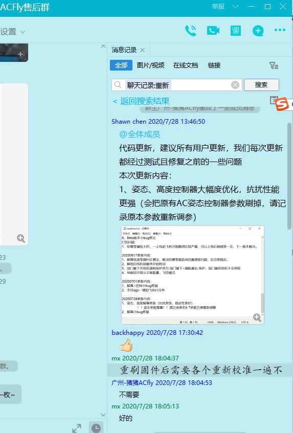 实飞我需要确认一下一些东西需不需要重新校准,电调要不要校准,(不过我电调换了估计还是得电调重新校准一下,之前问的时候重刷固件说是不需要重新校准,但是我硬件换了应该需要)