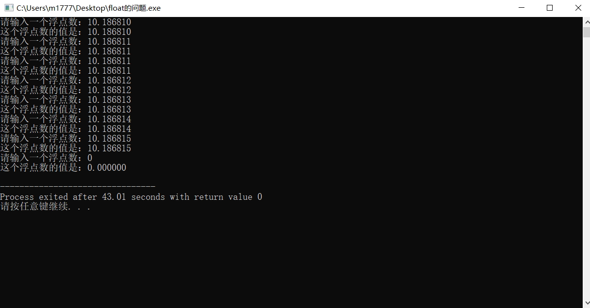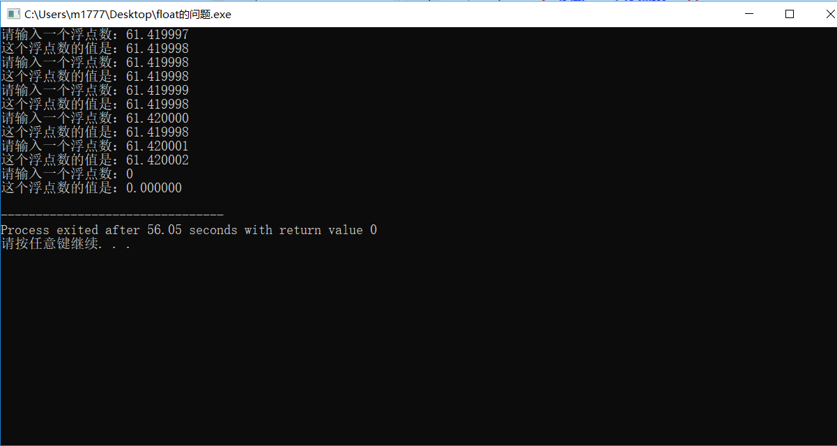 使用浮点数应注意:float单精度浮点数在计算机存储大多是近似值,无法精确表示准确数值。因此最好不要对float单精度浮点数进行比较的运算。如果想要更高精度的数据表示可以选择使用double双精度浮点数的类型或者用数组按位表示。