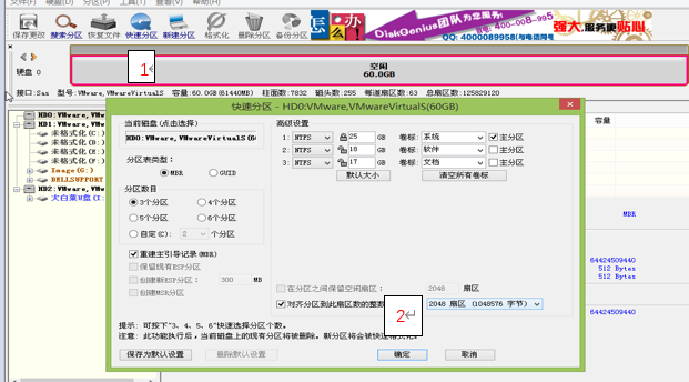 图上的2 位置处一般是默认的,3是我们将系统安装的位置为c盘。